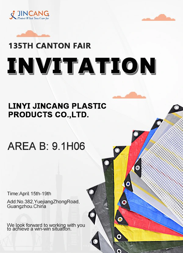 Ως κορυφαίος κατασκευαστής της Linyi Jincang Plastic Products Co Ltd, θα παρακολουθήσουμε την 135η Έκθεση Canton από τις 15 έως τις 19 Απριλίου στο Guznghou, China.Ghot να γνωρίζουμε ότι είστε στην επιχείρηση της PE Tarpaulin, σας προσκαλούμε για να επισκεφθείτε το Booth H06,9.1 Area B. Β. Β. Β.